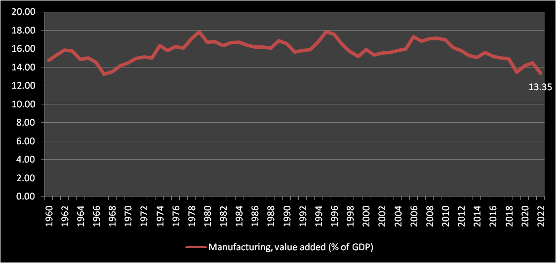 Figure 5 Manufacturing Value Added (Percentage of GDP) - India